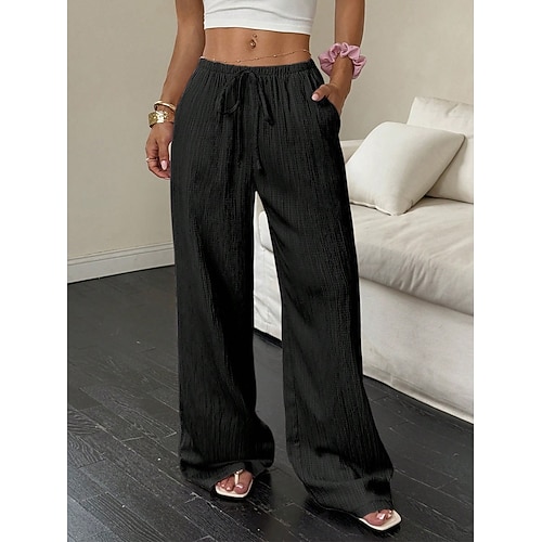Per donna Pantaloni Pantaloni casual Dritto Vacanza Moda Streetwear Lunghezza intera Vita Alta Semplice Tasca Elastico in vita Comodità Confortevole Quotidiano Vacanza Streetwear Nero Cachi Primavera