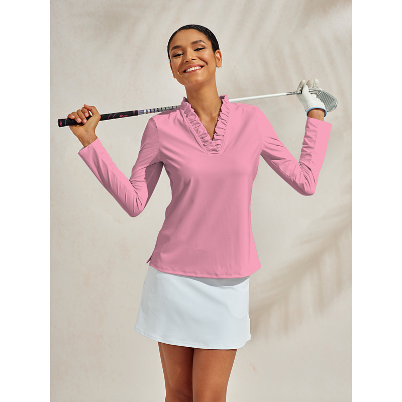 Women's Golf Polo Shirt Pink Long Sleeve Sun Protection Top Floral Fall Winter Ladies Golf Attire Clothes Outfits Wear Apparel