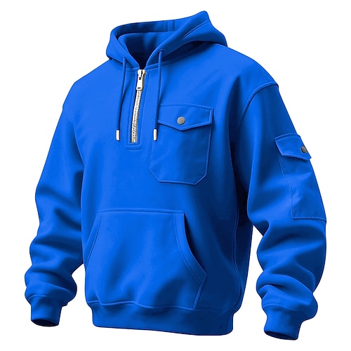 Per uomo Felpa con cappuccio Felpa con cappuccio e cerniera a un quarto Nero Rosso Blu marino Blu Reale Cachi Con cappuccio Liscio Tasche Sportivo Giornaliero Per eventi Streetwear Fantastico