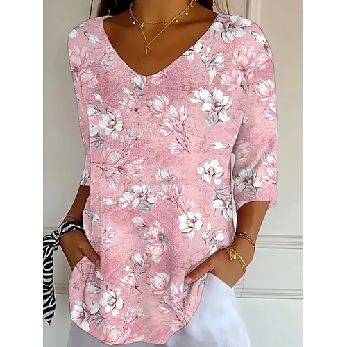 Per donna Blusa Floreale Grafico Foglia Vintage Tropicale Elegante Manica 3/4 Scollo a V Top Regolari Quotidiano Rosa Viola Arancione Marrone Rosso e Rosa Primavera Autunno Inverno