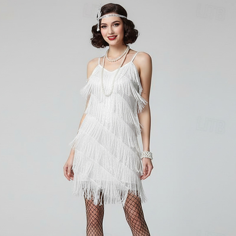 Set Roaring 20s 1920s Cocktail Dress Midi Flapper Dress Dress Outfits with Accessories Sleeveless The Great Gatsby Wedding Guest Sequins Tassel Fringe V Neck Fancy Dress Women's Masquerade Party