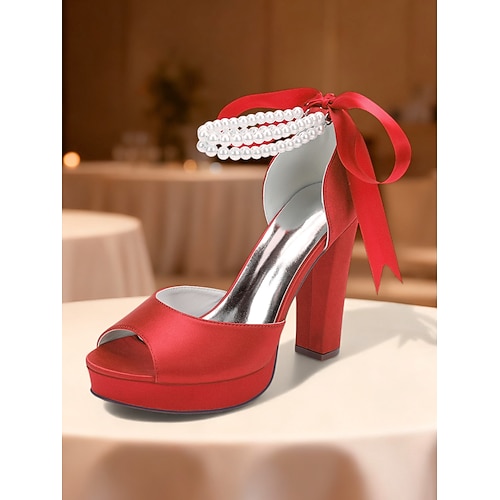 scarpe da sposa con tacco alto e plateau in pizzo bianco e perle da donna con cavigliere a nastro per cerimonie nuziali e formali