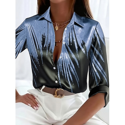 Per donna Camicia Camicia da lavoro Ombre Grafico Elegante Casual Manica Lunga Colletto a Camicia Top Regolari Lavoro Abbigliamento da sera Quotidiano Glitter Rosa Blu Viola Oro Verde Primavera