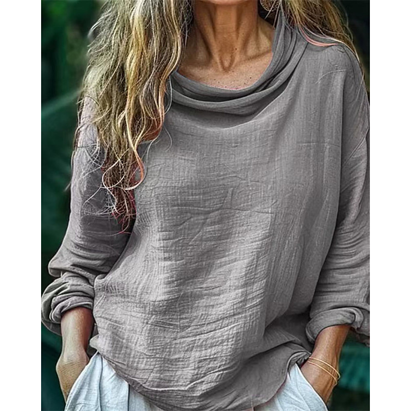 Women's Blouse Dressy Tops Solid Color Plain Elegant Vintage Daily Long Sleeve Cowl Neck Regular Tops Daily Work Holiday Ruched Patchwork Pink Red Orange Green Khaki Fall Winter