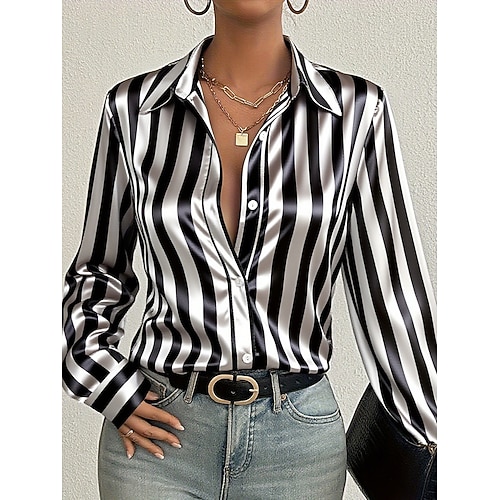 Damenhemd Schicke Tops Formelle Arbeitsbluse Grafik Gestreift Elegant Stilvoll Lässig Lange Ärmel Kragen Reguläre Tops Arbeit Täglich Schwarz Rot Braun Frühling Herbst Winter