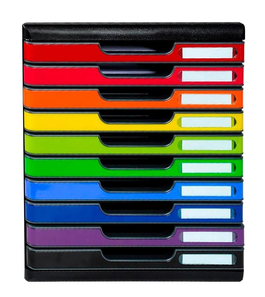 Exacompta 302798D 1x Schubladenbox MODULO A4, 10 geschlossene Laden - Regenbogen