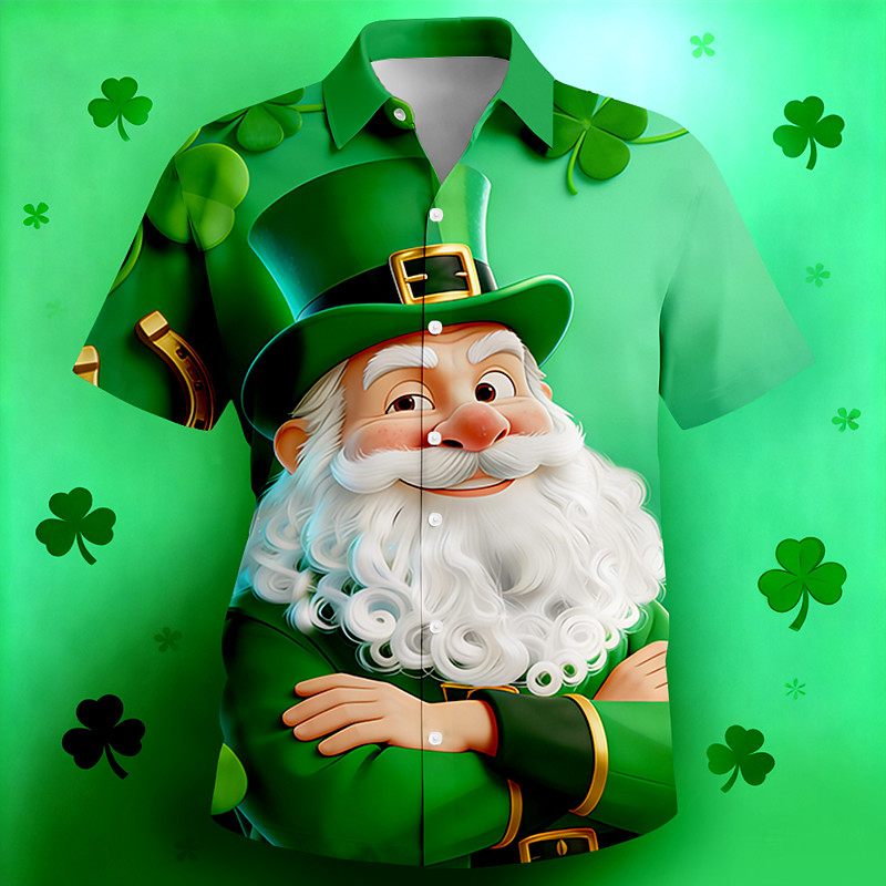 St.Patrick's Day Four Leaf Clover Casual Men's Shirt Daily Wear Going out Weekend Summer Turndown Short Sleeves Mint Green, Dark Green, Green S, M, L 4-Way Stretch Fabric Shirt St.
