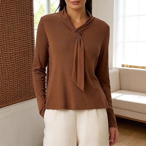 Per donna Tunica Maglietta Tinta unica Elegante Essenziale Classico Manica Lunga Scollo a V Top Regolari Quotidiano Blu Rosa Vino Marrone Verde Primavera Autunno Inverno