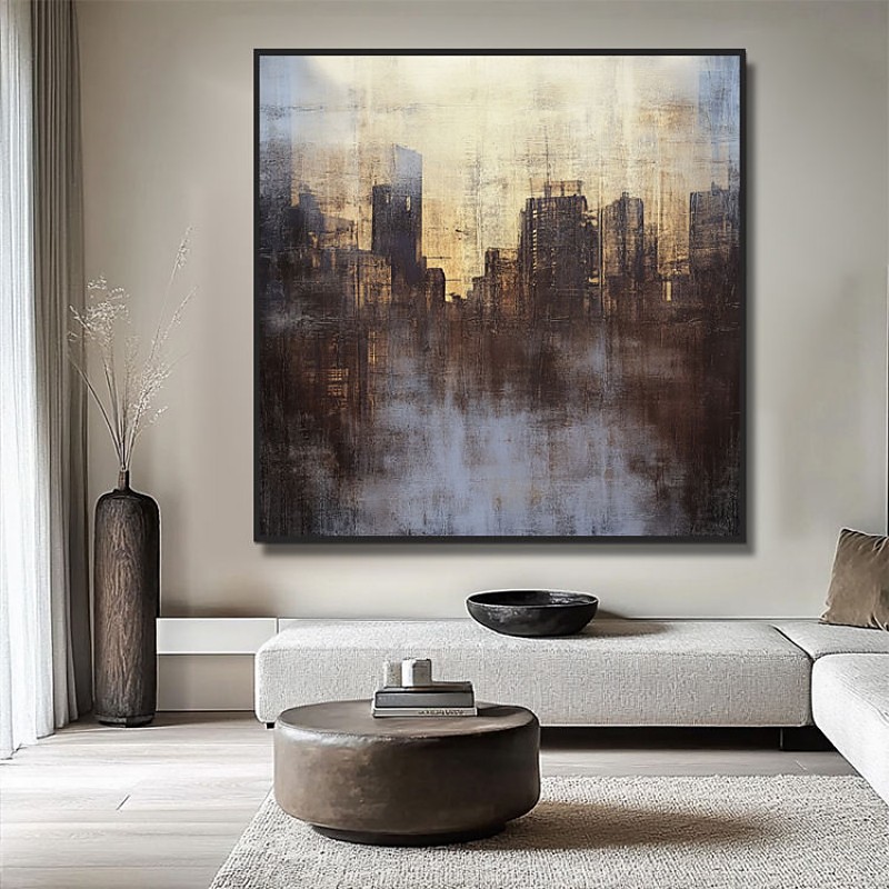 Handmade Oil Painting Acrylic Canvas Wall Art Decoration Square Abstract Architectural Restaurant Decorative Painting for Home Decor Rolled Frameless Unstretched Painting