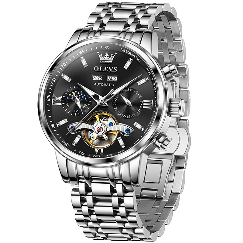 The New Olevs Men'S Business Watch With Luminous Perpetual Calendar Date And Day Display Multi-Functional Mechanical Watch Skeletonized Casual And Fashionable Waterproof Sports Men'S Wristwatch
