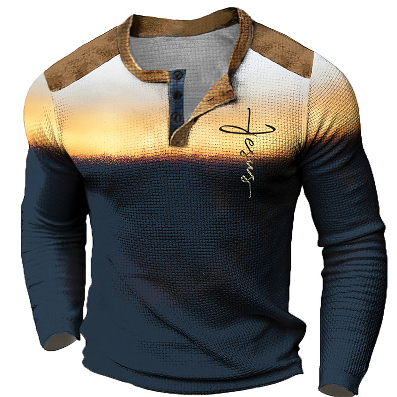 Men's Graphic Color Block Faith Henley Shirt Waffle T Shirt Long Sleeve 3D Print Fashion Designer Casual Sports Outdoor Holiday Festival Spring Fall Black Navy Blue Brown Green Henley Henley