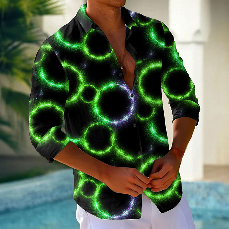 Men's Geometric Circle Neon Glow Shirt Button Up Shirt Casual Dress Shirt Long Sleeve Fashion Casual Vacation Daily Streetwear Summer Spring Turndown 3D Print Collared Shirts Red Blue Orange Green