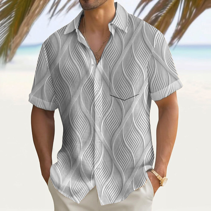 Men's Geometric Waves Shirt Summer Shirt Button Up Shirt Short Sleeve Fashion Casual Outdoor Vacation Dailywear Summer Spring Turndown 3D Print Collared Shirts Front One Pocket Blue Green Khaki Gray