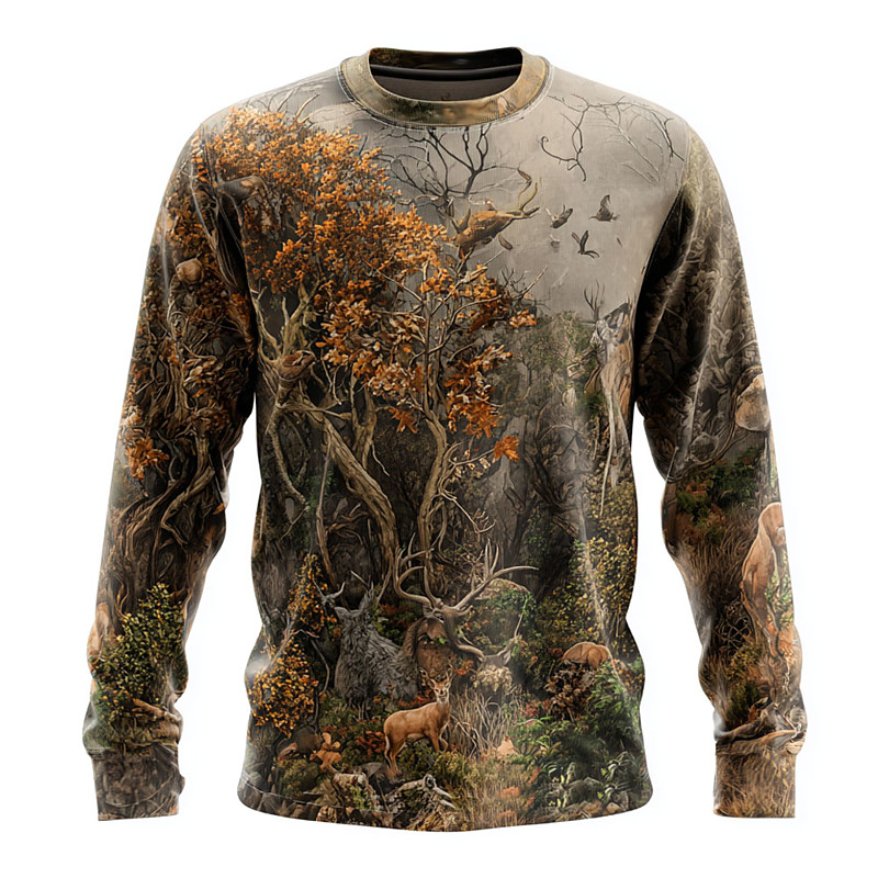Men's Camo Deer T Shirt Long Sleeve T shirt 3D Print Crew Neck Shirt Fashion Outdoor Street Sports Outdoor Hunting Green 1# Green 2# Green 3# Summer Spring Clothing Apparel S M L XL XXL XXXL