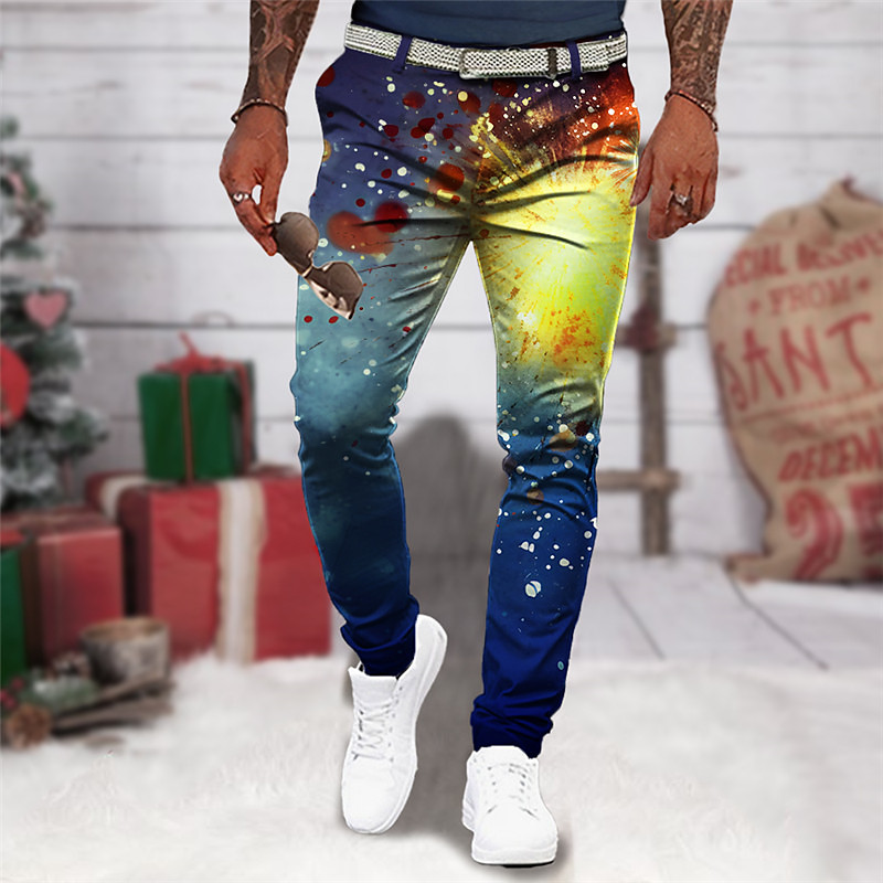 Christmas Graffiti Business Abstract Men's 3D Print Dress Pants Pants Trousers Outdoor Daily Wear Streetwear Polyester Navy Blue Blue Purple S M L Medium Waist Elasticity Pants