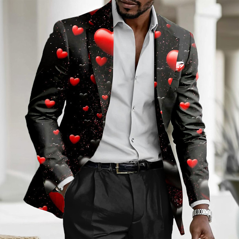 Valentine's Day Men's Heart Blazer Jacket Coat Fashion Comfortable Breathable Artistic Casual Daily Party Evening Wear Festival 3D Print Buttons Print All Seasons Notch Long Sleeve Red Purple