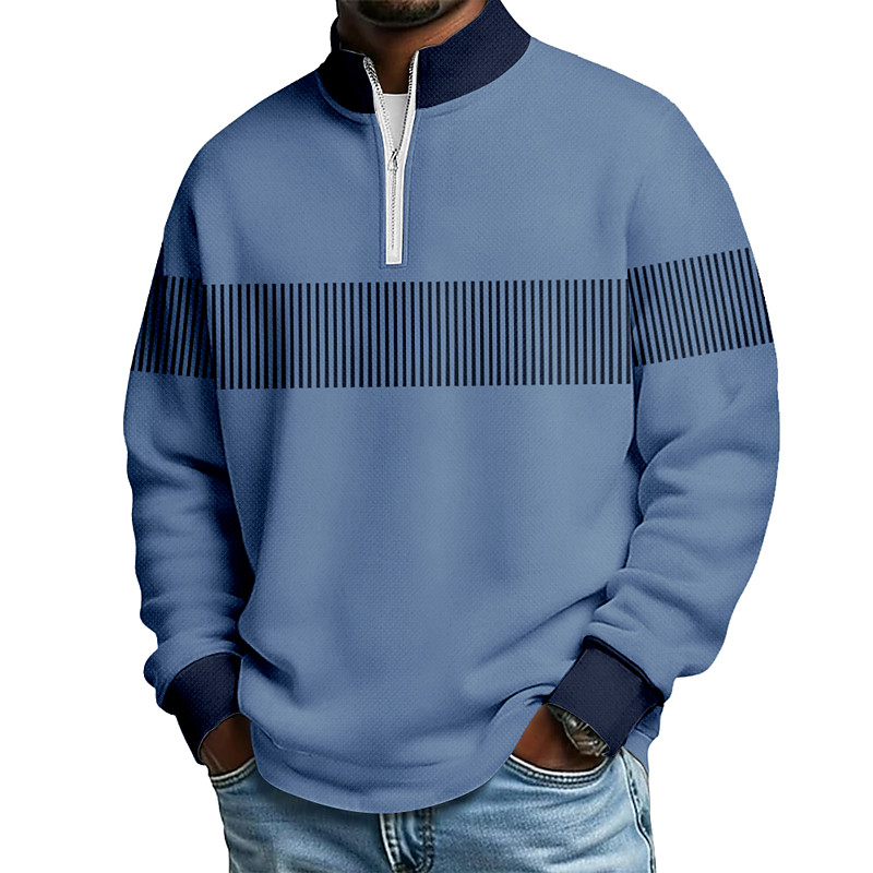 Men's Color Block Zip Polo Shirts Long Sleeve Polo Shirts Grandad Collar Casual School Athleisure Holiday Daily Wear 3D Print Quarter Zip Polo Spring Fall Winter Blue Navy Blue Purple