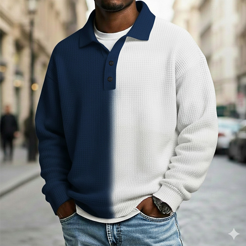 Men's Color Block Waffle Polo Shirts Long Sleeve Polo Shirts Lapel Sportswear Casual School Athleisure Daily Wear 3D Print Spring Fall Winter Blue Navy Blue Purple