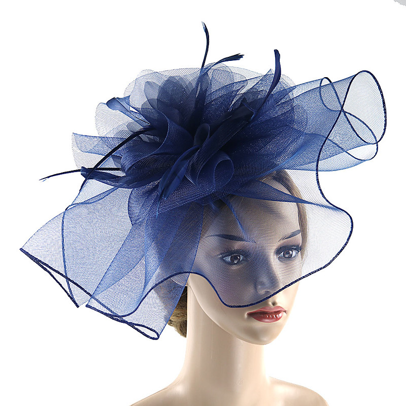 Fascinators Hats Headwear Organza Fedora Hat Top Hat Veil Hat Horse Race Cocktail Elegant Retro With Feather Pure Color Headpiece Headwear