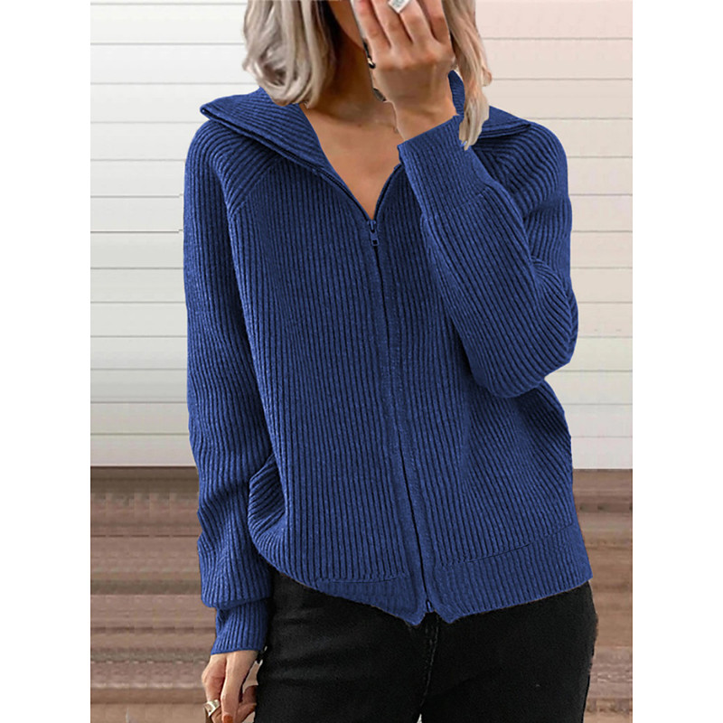 Women's Winter Coat Comfortable Breathable Zipper Fashion Daily Plain Outdoor Casual Daily Zipper Regular Lapel Regular Fit Long Sleeve Outerwear Black White Blue Spring Fall