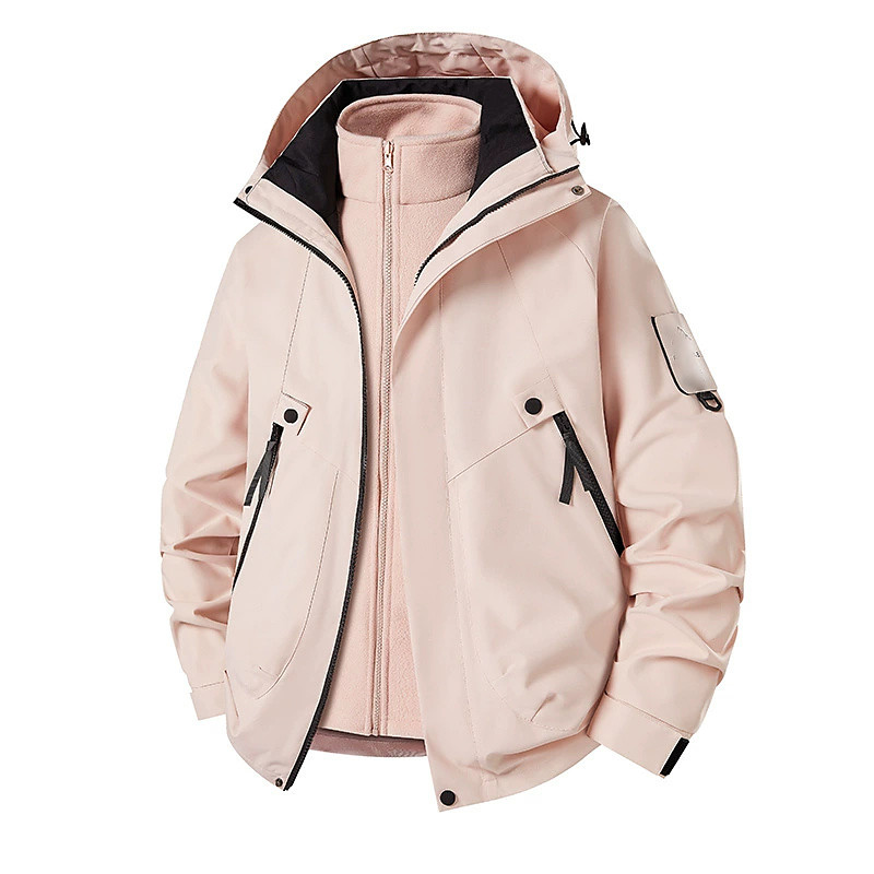 Women's 3-in-1WaterproofDownJacket With Hood Waterproof Comfortable Zipper Pocket Casual Plain Vacation Street Daily Wear Going out Zipper Regular Hooded Regular Fit Long Sleeve Outerwear Blue