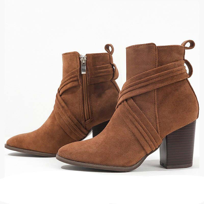 Women's Blue Suede Ankle Boots – Stylish Block Heel Short Booties with Side Zipper for Casual Fall and Winter Outfits