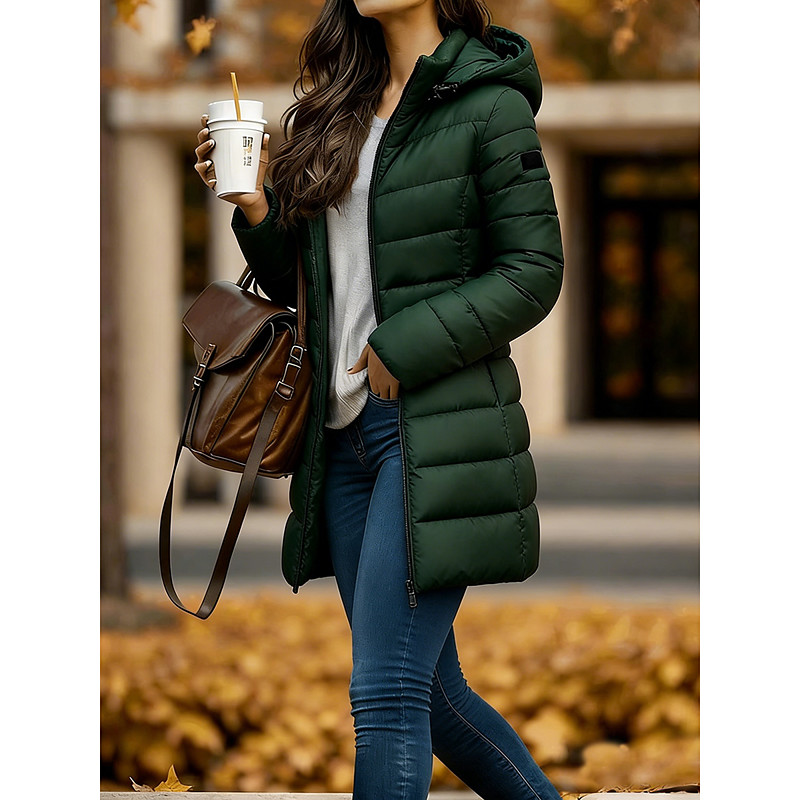 Women's Down Jacket Coat Warm Comfortable Zipper Pocket Fashion Plain Daily Wear Going out Casual Daily Weekend Zipper Long Crewneck Regular Fit Long Sleeve Outerwear Silver Purple Khaki Fall Winter