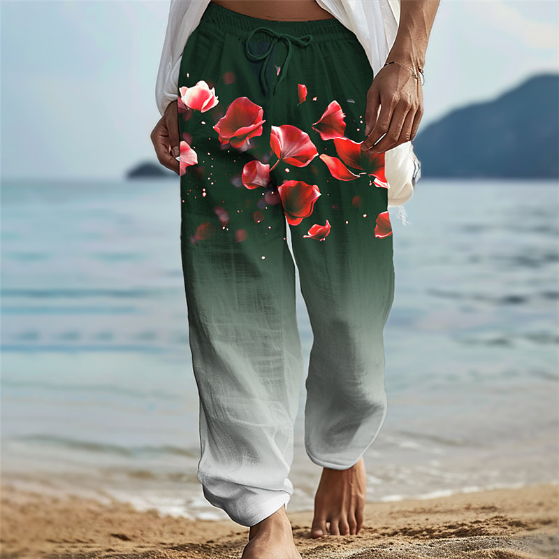 Valentine's Day Floral Men's Romantic 3D Printed Casual Pants Trousers Elastic Waist Drawstring Loose Fit Straight-Leg Summer Beach Pants S TO 3XL