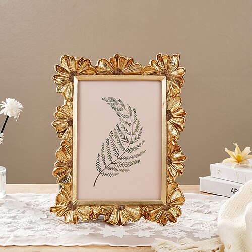 Cornice portafoto decorativa 3D a forma di margherita dorata, in resina, stile europeo, da tavolo, ideale per arredare camera da letto, soggiorno, studio, corridoio, come regalo per le feste o come