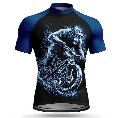 Da uomo Maglia da Ciclismo Orangutan Manica Corta Bicicletta Maglia Top con 3 tasche posteriori Resistente ai Raggi UV Asciugatura Rapida Con tasche Cerniera Frontale Gli sport Blu Abbigliamento