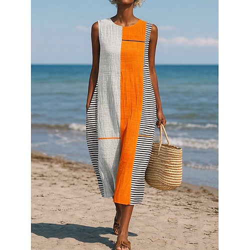 Per donna Abito Lungo Maxi Abito Abiti in cotone e lino Abito a Tubino Vestito Estivo Vestito Casual Elegante Moda Moderno Quotidiano Vacanza Uscire Vestibilità regolare Vestibilità comoda Semplice