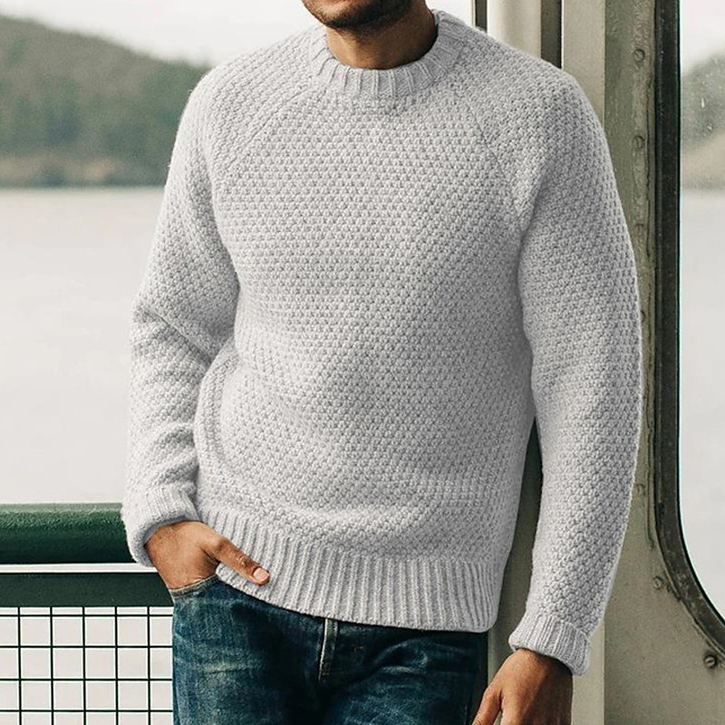 Men's Pullover Sweater Jumper Knit Sweater Ribbed Crochet Knit Regular Knitted Plain Crew Neck Fashion Basic Daily Wear Date Clothing Apparel Fall Winter Black White S M L
