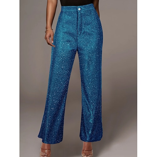 Per donna Gamba larga Pantaloni scintillanti Elegante Moda Streetwear Lunghezza intera Vita Alta Brillante Paillettes Comodo Morbido Confortevole Micro-elastico All'aperto Feste Streetwear Nero Rosa
