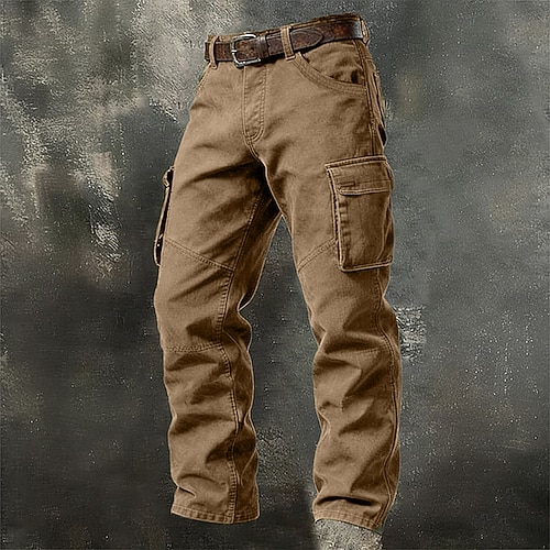 Per uomo Pantaloni Cargo Pantaloni da Lavoro Elastico in vita Multi-tasche Gamba Dritta Semplice Lunghezza intera Lavoro Vacanza Stile Etnico Nero Verde militare Inelastico