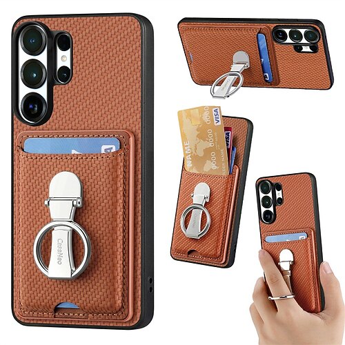 Handy Hülle Handyhüllen Für Samsung Galaxy S26 S26 Plus S26 Ultra Rückseite Mit Ständer Ringhalter Kartenfach Retro TPU Faser PU-Leder