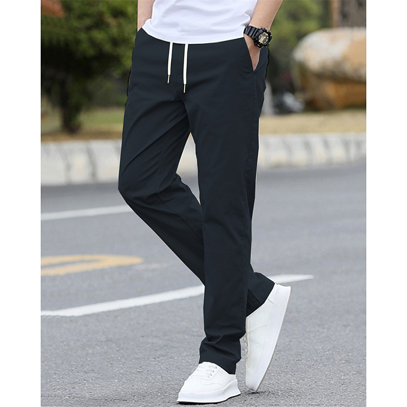 Men's Trousers Chinos Pocket Elastic Waist Drawstring Plain Comfort Formal Party Work Fashion Classic Style Black Light Green Micro-elastic