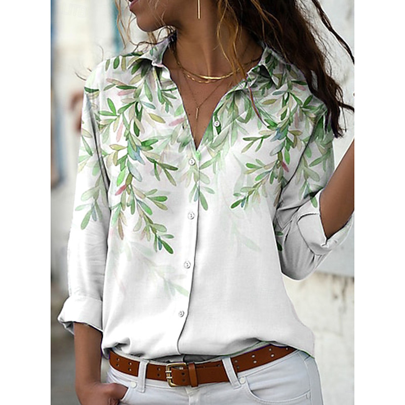 Women's Shirt Button Down Tunic Shirt Collar Long Sleeve Ombre Floral Graphic Vintage Tropical Stylish Regular Tops Work Daily s Print White Pink Red Green Beige Spring Fall