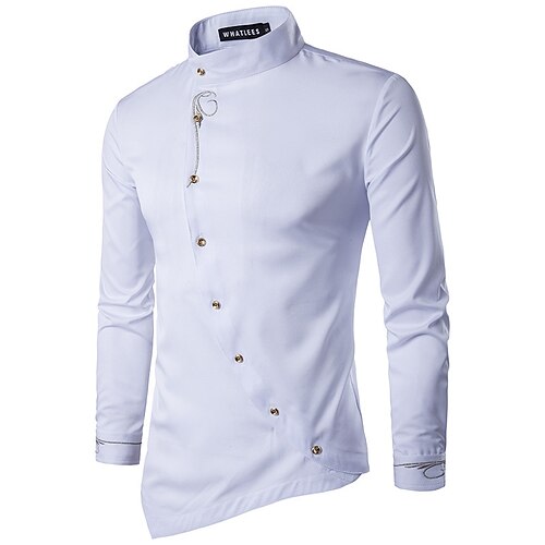 Per uomo Camicia Camicia casual Camicia con Bottoni Camicia Designer Camicia ricamata Nero Bianco Vino Blu marino Azzurro cielo Manica Lunga Tinta unica Collo alla coreana Formale Feste Ricamato