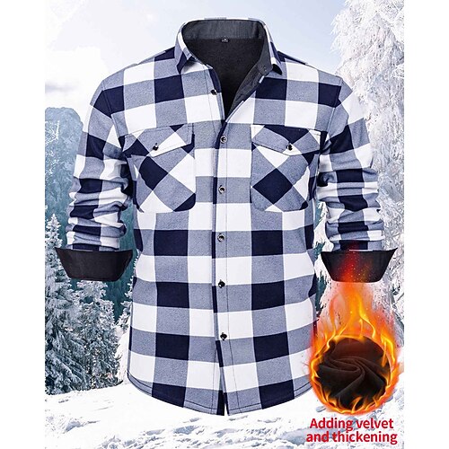 Per uomo Giacca-camicia Giacca camicia Giacca invernale Plaid Vacanza Abbigliamento quotidiano Bianco Rosso Blu marino Azzurro cielo Manica Lunga Bavero Autunno Inverno Abbigliamento Tasca Frontale