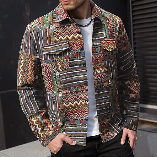 Per uomo Camicia Camicia casual Giacca camicia Sopracamicia Rombo Quotidiano All'aperto Rosso Azzurro cielo Marrone Manica Lunga Collo ripiegato Primavera Autunno Abbigliamento Tasca