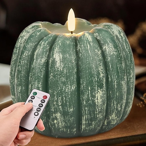 Zucca autunnale, candela elettronica lampeggiante a led senza fiamma, luce per Halloween, festa del Ringraziamento, decorazione da tavolo, luce pendente, timer a 8 funzioni, telecomando, batteria AAA,