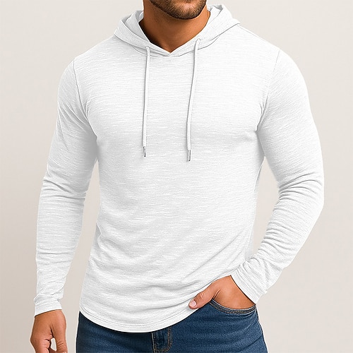 Per uomo Maglietta Manica Lunga Con Cappuccio Primavera Autunno Tutte le stagioni Tinta unica Tradizionale / Vintage Felpe Con cappuccio Puro All'aperto Casuale Abbigliamento sportivo Blu chiaro