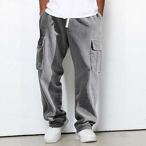 Herren Cargo-Jogginghose Jogginghose Hose Cordhose Kordelzug Tasche Elastischer Bund Einfach Komfort Sport im Freien Täglich Mode Lässig Schwarz Armeegrün Mikroelastisch
