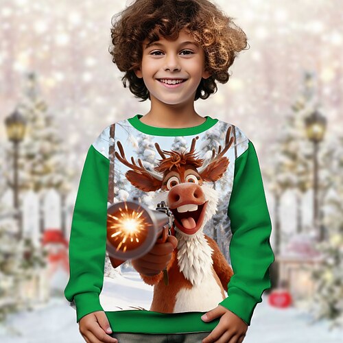 Weihnachten Jungen 3D Grafik Jeder Sweatshirt Langarm Frühling Herbst Mode Basic Kinder 4-12 Jahre Rundhalsausschnitt Outdoor Lässig Täglich Normale Passform