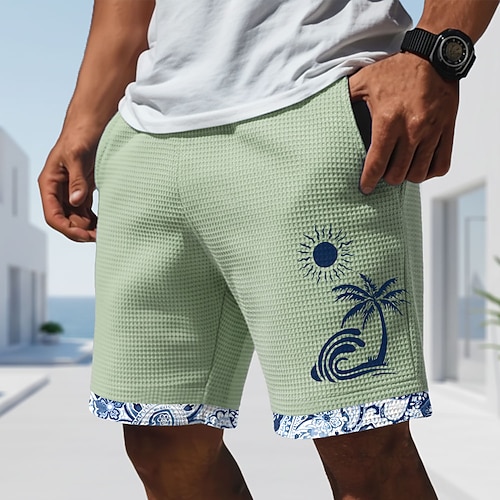 Per uomo Albero di Cocco Piante Tropicali Pantaloncini Waffle Pantaloncini da tuta Pantaloncini casual Misura del girovita medio Moda Casual Vacanza Jogging Allenamento Coulisse elastica in vita