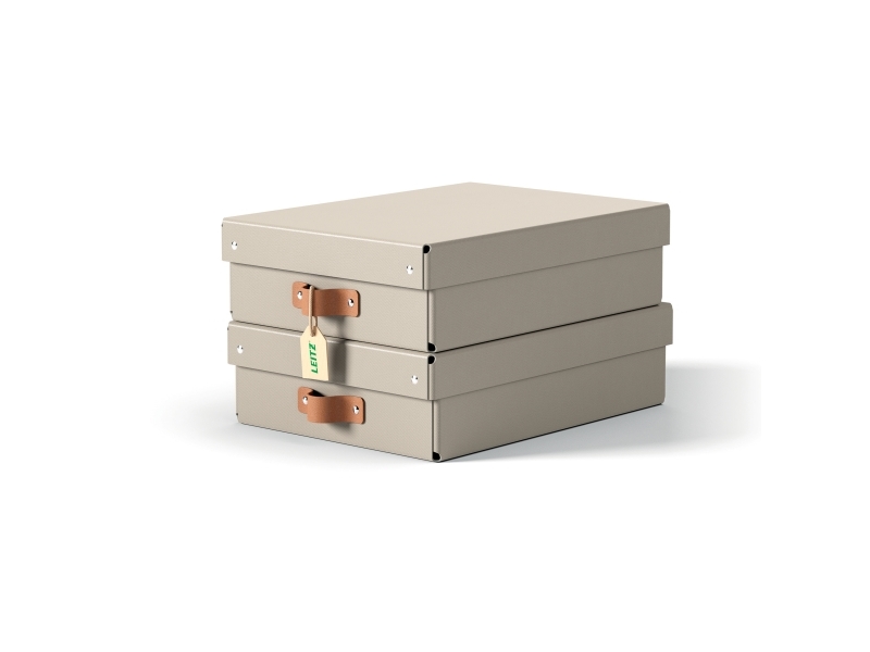 Leitz Puro oppbevaringsboks med lokk, middels lav, 8L, 100 % resirkulert kartong, pakke med 2, Grå, Kartong, 8 l, 270 mm, 370 mm, 100 mm