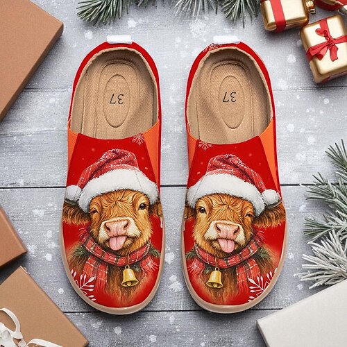 scarpe da viaggio in tela con punta larga da donna e motivo renna: graziose scarpe da passeggio natalizie, perfette per i viaggi delle vacanze e per lo streetwear invernale