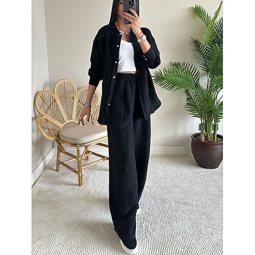 Per donna Set di Pantaloni Manica Lunga Colletto a Camicia Tinta unica Moda Streetwear Casuale Quotidiano All'aperto Blu Nero Bianco Primavera Estate Vestibilità regolare