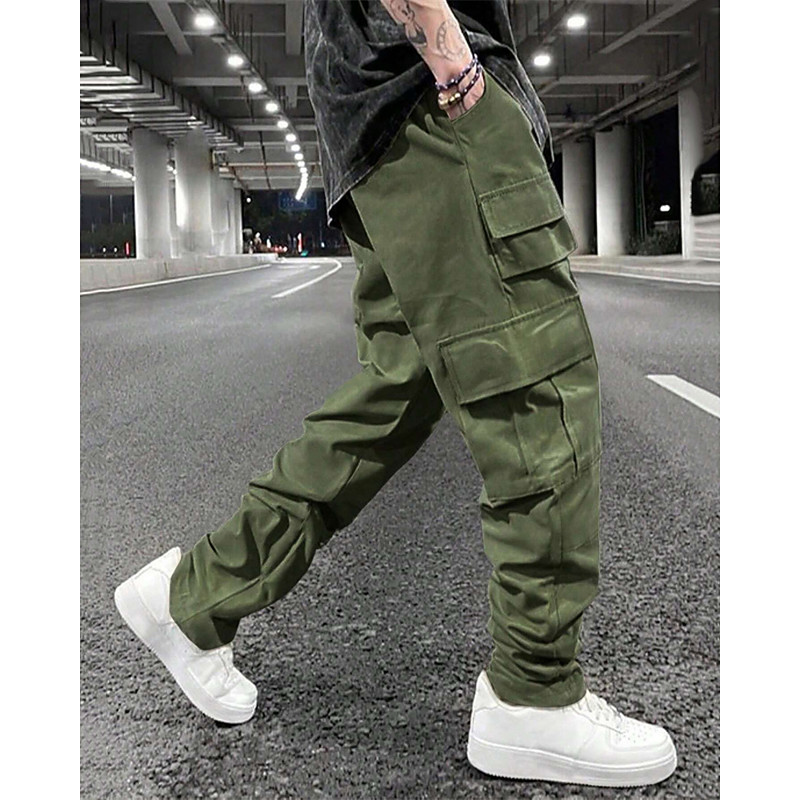 Men's Cargo Pants Trousers Multi Pocket Plain Windproof Wearable Full Length Outdoor Daily Camping Hiking Streetwear Stylish ArmyGreen Black