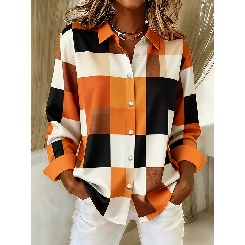 Women's Shirt Graphic Plaid Color Block Vintage Daily Stylish Long Sleeve Shirt Collar Regular Tops Daily Patchwork Buttons Print Blue Purple Orange Green Fall Winter